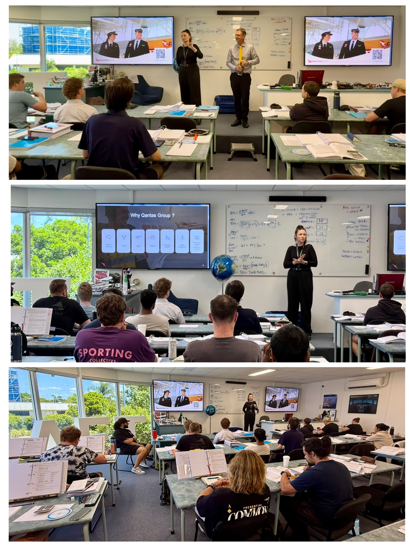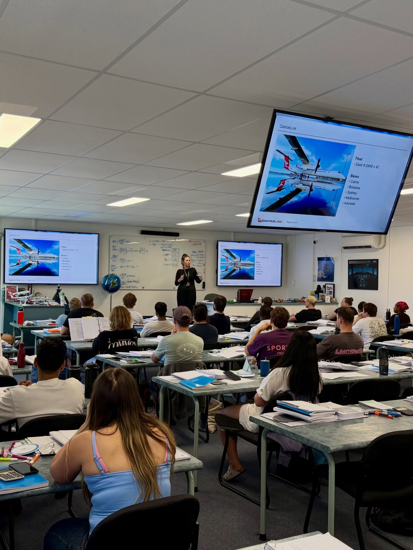With QantasLink actively recruiting, it was the perfect chance for our ATPL students to hear firsthand what it takes to join the Qantas Group and become part of something bigger! Lots of valuable information was given including what working for the Qantas group looks like, QantasLink minimum hour requirement, information on interview techniques, simulator assessments, psychometric testing, bases, fleet, rostering, progression opportunities and much more!