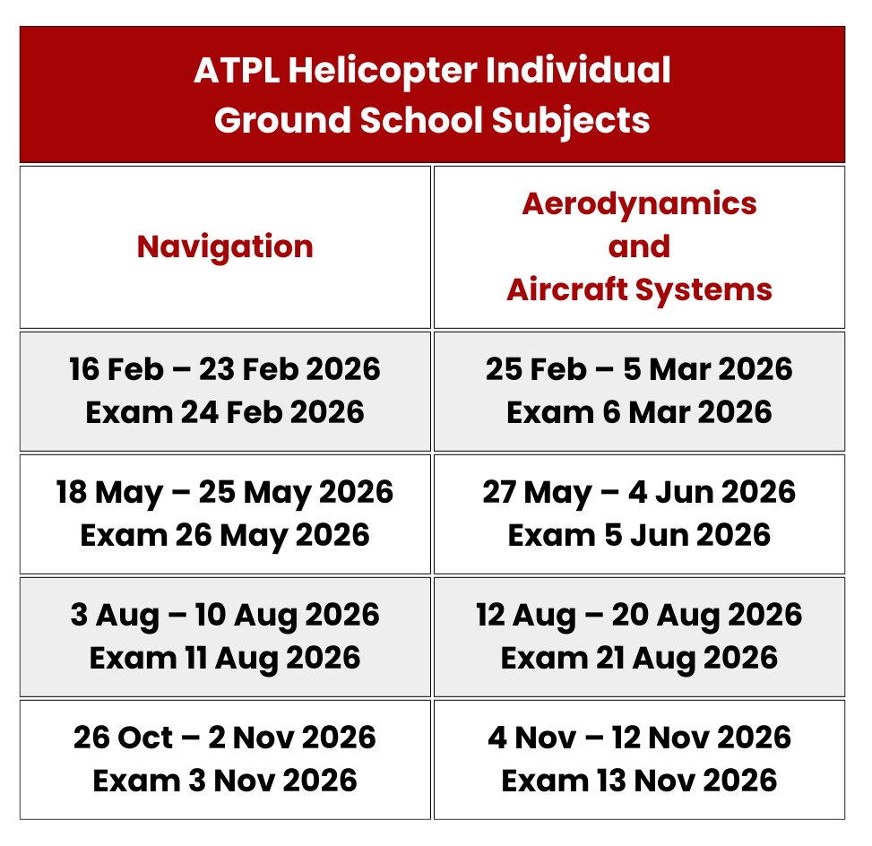 ATPL(H) Flight Planning, Performance and Loading, Human Factors, Air Law and Meteorology are available by Distance Learning study only.